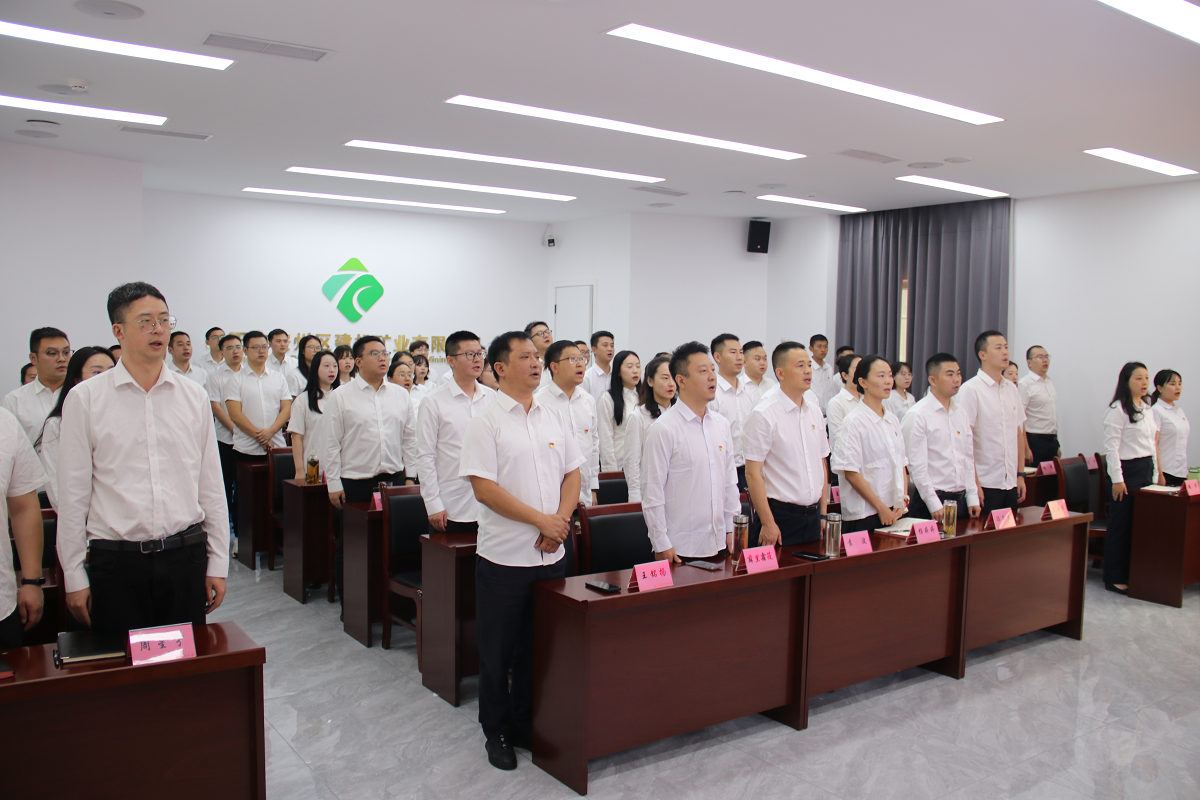 9時(shí)許,莊嚴(yán)的國歌聲響起,全體員工起立,行注目禮,仿佛置身于天安門廣場(chǎng),與全國人民一同感受這一神圣時(shí)刻。